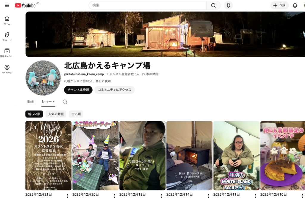 かえるキャンプ場の公式YouTubeチャンネルを開設しました